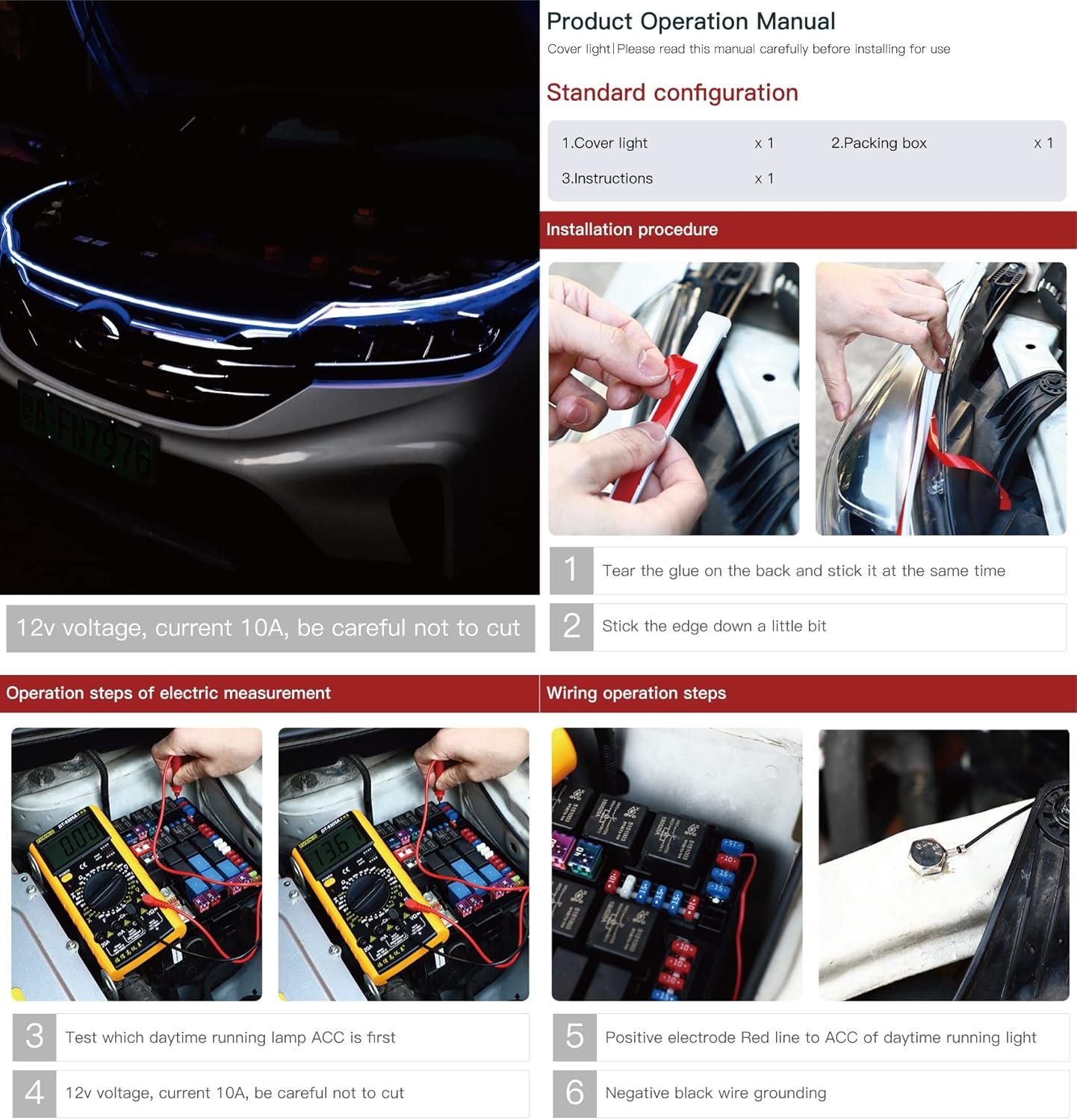 Bande Lumineuse Pour Capot De Voiture De 180 Cm / 71 Pouces, Bande Lumineuse Universelle Pour Capot De Voiture 12V, LED Flexible Étanche, Adaptée Aux Voitures, SUV, Camions détails 0