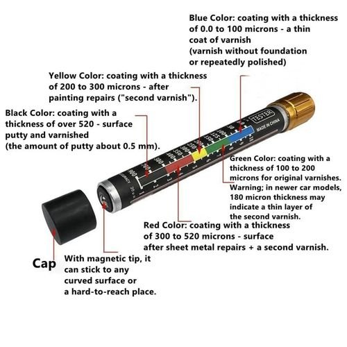 Ce testeur d’épaisseur de peinture magnétique est l’outil idéal pour vérifier rapidement si un véhicule a été repeint, réparé ou accidenté. Grâce à son système d’aimant haute précision, il mesure l’épaisseur du revêtement pour révéler toute retouche cachée. 🚘🧲