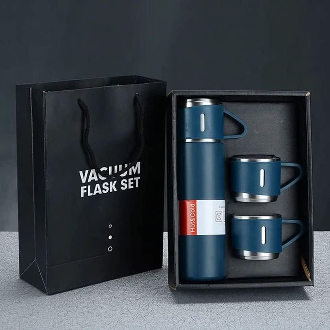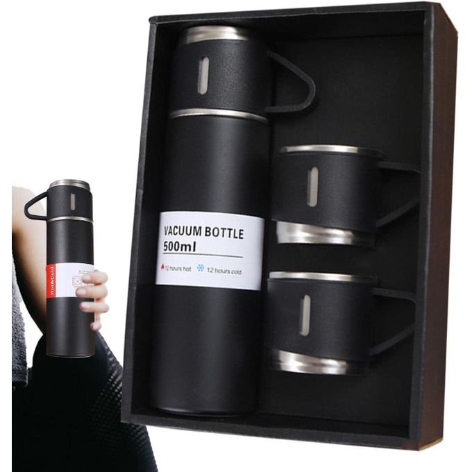 Offrez-vous ou offrez à vos proches ce **coffret thermos avec 3 tasses en acier inoxydable**, pratique et élégant, parfait pour garder vos boissons chaudes ou froides pendant des heures à la maison ou en déplacement.