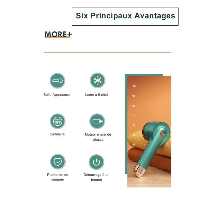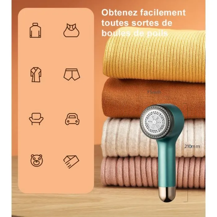 - ✔️ Élimine efficacement peluches, bouloches, fils tirés et fibres mortes.