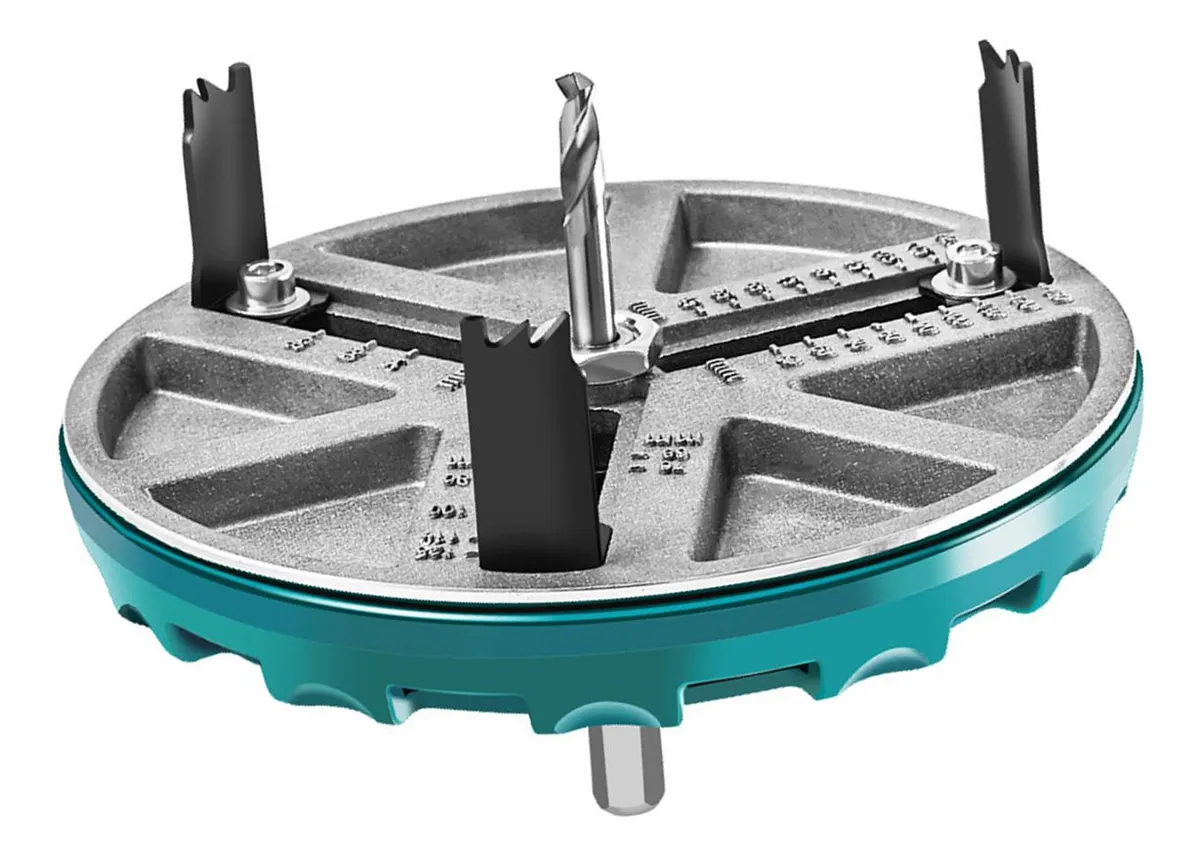 - Diamètre réglable de 45 mm à 130 mm – un seul outil pour plusieurs tailles de trous.